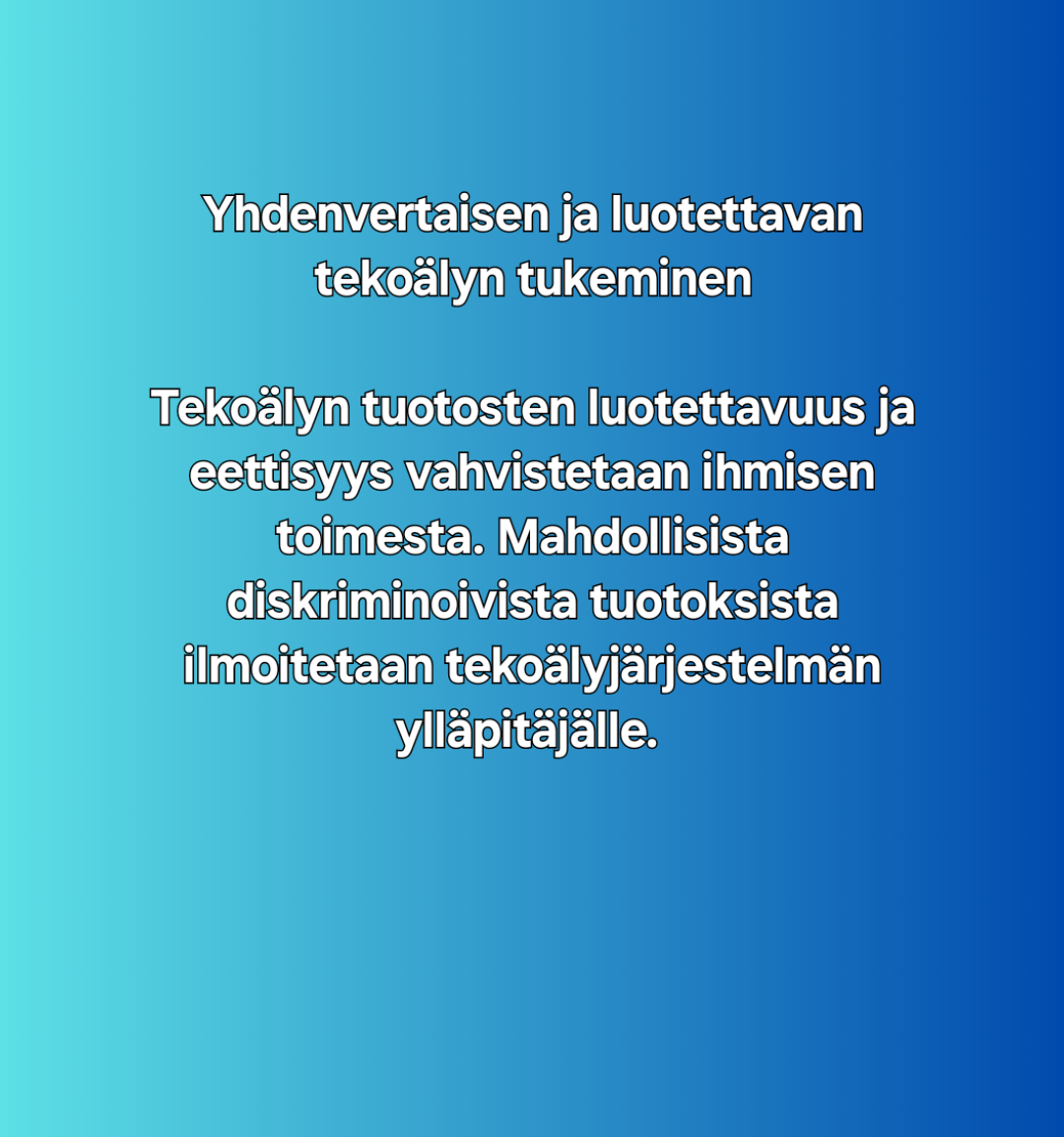 Opinnäytetyöprojektiani (linkki Theseukseen) Vastuullisen tekoälyn periaatteet rekrytoinnissa työstäessä kiinnostukseni tekoälyä kohtaan kasvoi sellaisiin sfääreihin, että pian minulla olikin jo yritys aiheen parissa. Nautin asioiden hoitamisesta tarkasti ja tehokkaasti, mutta pieni pilke silmäkulmassa ja hymyssä suin. Tehdään tekoälystä vastuullisempaa hyvällä fiiliksellä!
