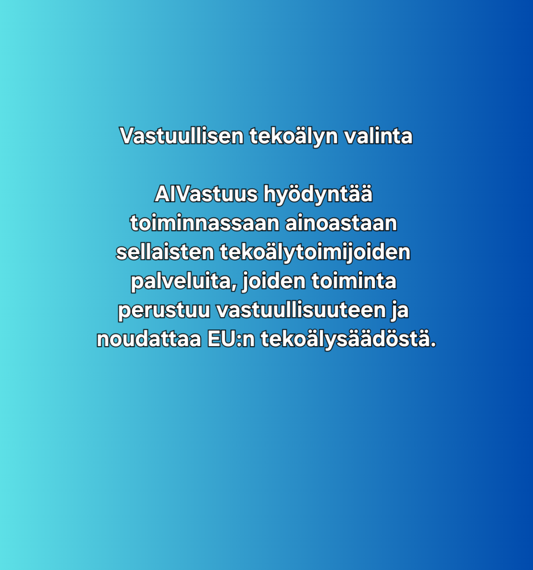 AIVastuus on yritys, jonka missiona on edistää tekoälyn eettistä vastuullisuutta kaiken kokoisissa yrityksissä ja organisaatioissa. AIVastuus tarjoaa yrityksille monipuolisia ja kustannustehokkaita keinoja kehittää tekoälyvastuullisuuttaan tavoilla, jotka mahdollistavat esimerkiksi yrityksen ja sen sidosryhmien välisen luottamuksen kehittymisen sekä yrityksen sisäisen tietoisuuden kasvamisen tekoälyn eettisistä riskeistä ja turvallisista toimintatavoista. Oli toimiala tai tekoälyn hyödyntämismuoto sitten mikä tahansa, AIVastuus on tukenasi kohti vastuullisempaa tekoälyä!